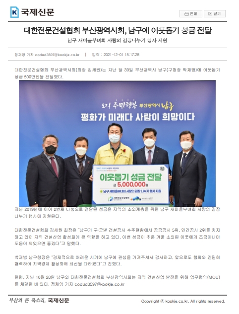 부산 상수도사업본부장 간담회 및 수영구청 희망다리놓기 성금지원