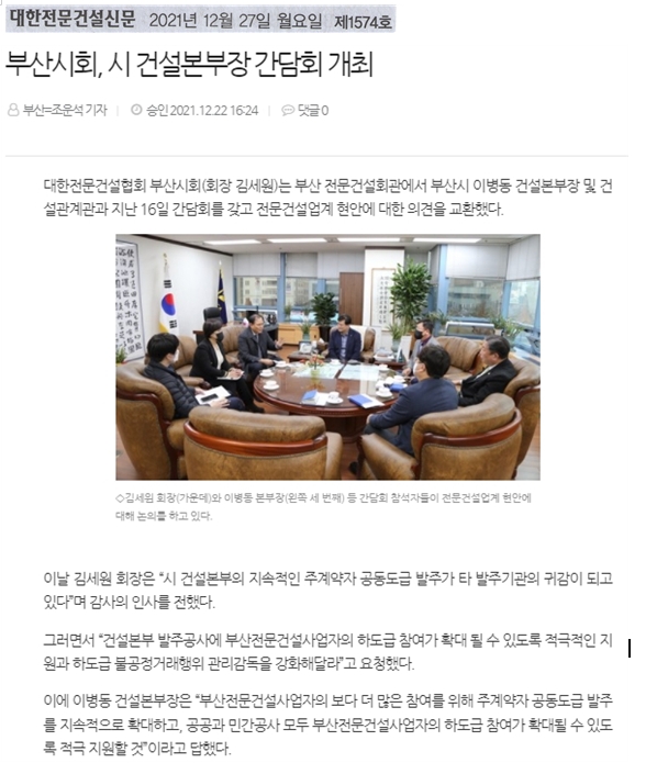 이헌승 국회 국토교통위원장과 전문건설 현안 논의